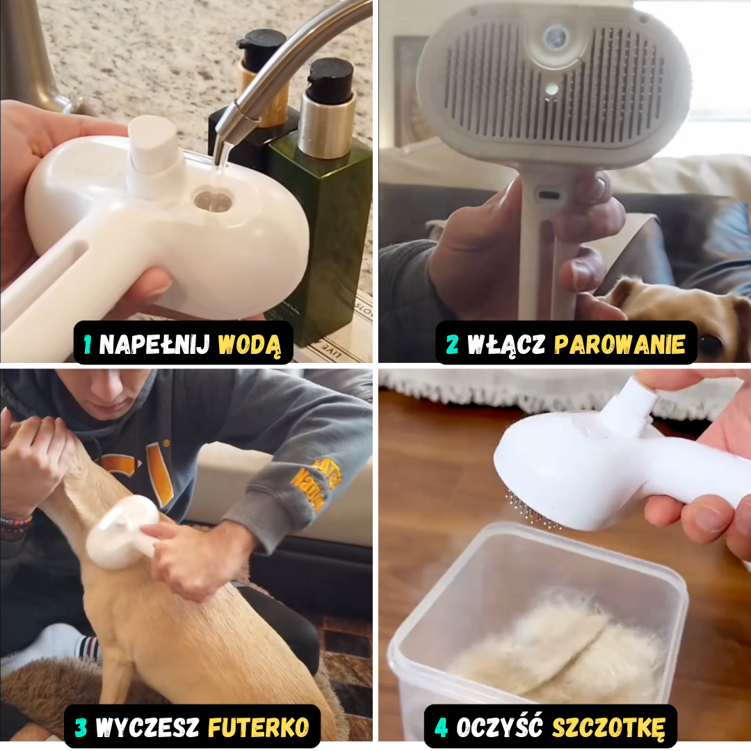 🌟 Poznaj FurCloud™ – innowacyjną szczotkę parową, która zmienia codzienne czesanie w błogi rytuał.